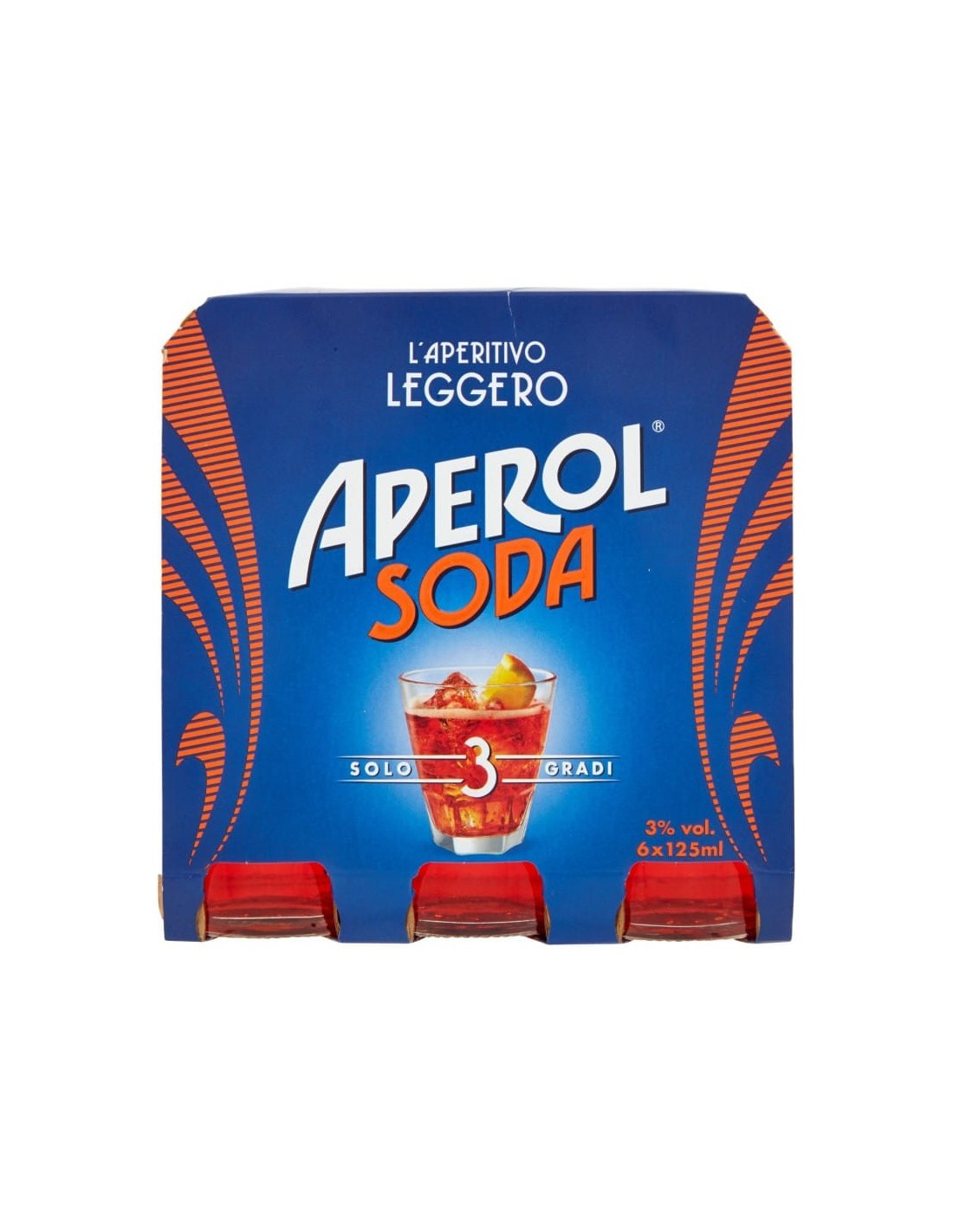 Aperol Soda. Erfrischender und belebender Aperitif auf Basis ausgewählter Kräuter- und Wurzelauszüge. Wenig Alkohol, nur 3 Grad.