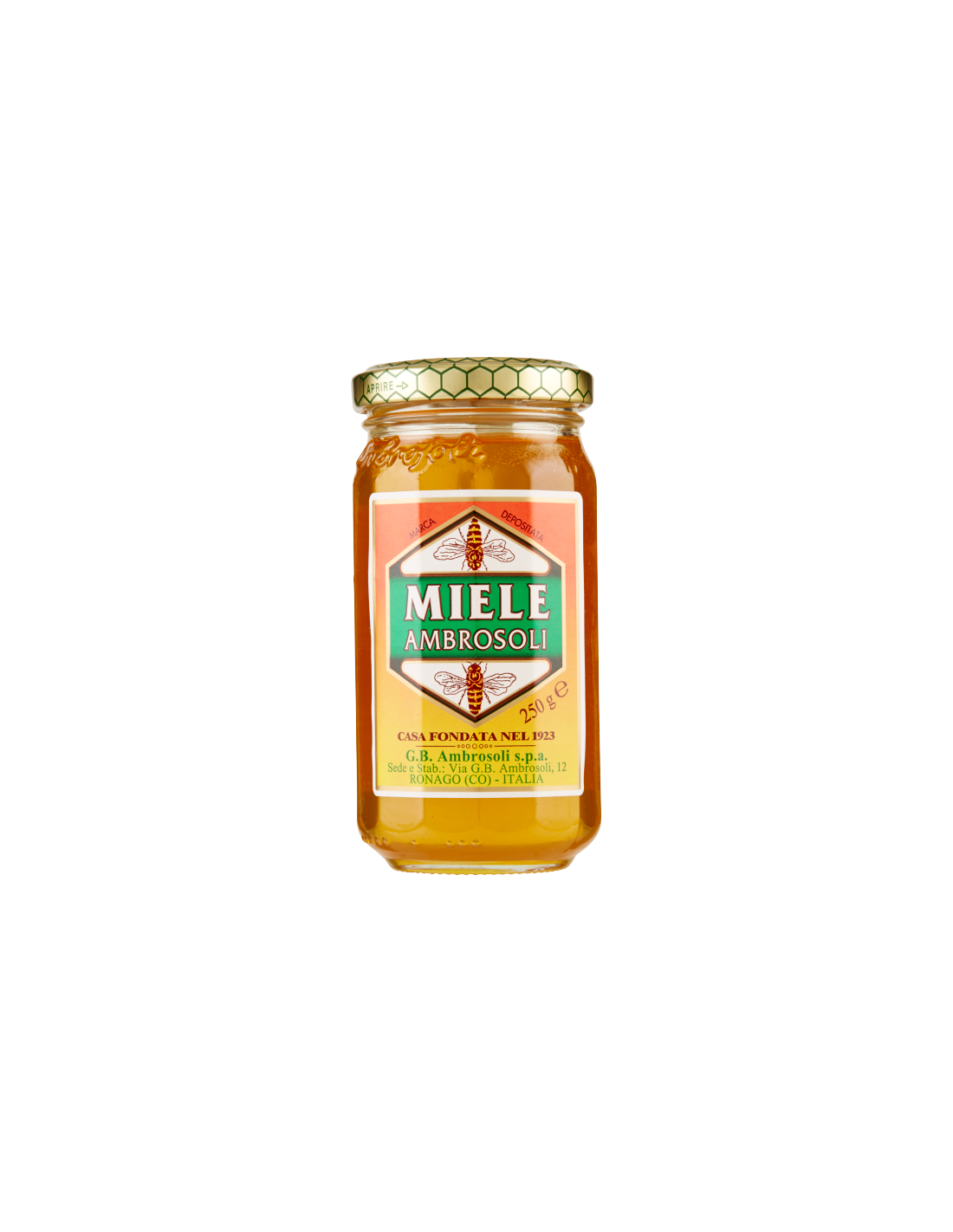 Ambrosoli Wildblumenhonig: Eine echte und natürliche Süße, die das Wesen italienischer Blumen in jedem Löffel einfängt. Perfekt für alle, die echte und intensive Geschmacksrichtungen schätzen. Ideal als natürlicher Süßstoff in Tee oder Kaffee, köstlich auf geröstetem Brot oder als geheime Zutat in Süßspeisen und Vinaigrettes.