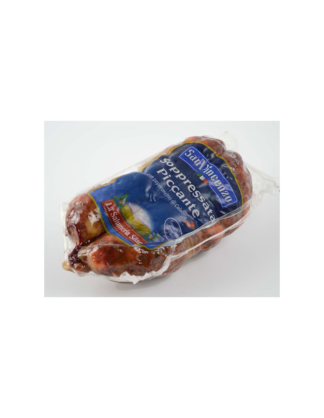 Die San Vincenzo Scharfe Soppressata ist eine traditionelle Wurstspezialität, die sich durch ihren intensiven und aromatischen Geschmack auszeichnet, perfekt für alle, die kräftige Aromen lieben. Hergestellt aus hochwertigem Fleisch und mit scharfen Gewürzen verfeinert, bietet diese Soppressata ein außergewöhnliches Geschmackserlebnis, das Süße und Schärfe vereint. Ideal für Vorspeisen, Wurstplatten oder als Zutat in schmackhaften Rezepten, ist die San Vincenzo Scharfe Soppressata eine ausgezeichnete Wahl, um jedes Gericht zu verfeinern und jeden Anlass besonders zu gestalten. Entdecken Sie das Vergnügen der authentischen italienischen Gastronomie mit diesem reichen und geschmackvollen Produkt.