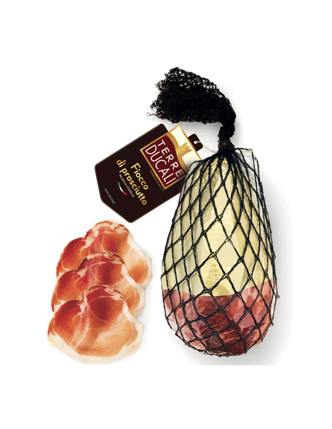 Goldener Schinken mit Schwarte von Terre Ducali ist eine typische Wurst aus Parma, hergestellt aus dem magersten Teil des Schweinekeuls, nach traditionellen Methoden verarbeitet. Die Schwarte schützt das Fleisch während des Reifens, bewahrt Feuchtigkeit und Aroma und sorgt für ein weicheres, duftenderes Produkt.