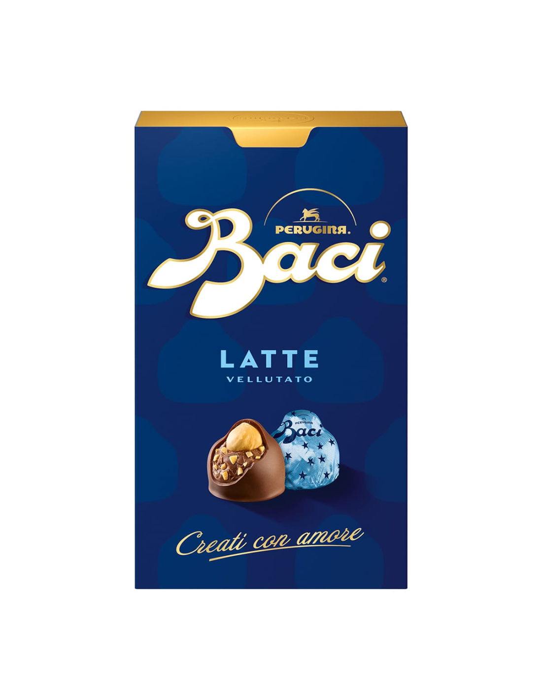Der Baci Perugina Latte sind eine Variante des klassischen Baci Perugina, hergestellt mit Milchschokolade anstelle der traditionellen dunklen Schokolade. Auch in dieser Variante behalten die Pralinen die typische Füllung aus Gianduia und ganzen Haselnüssen bei.