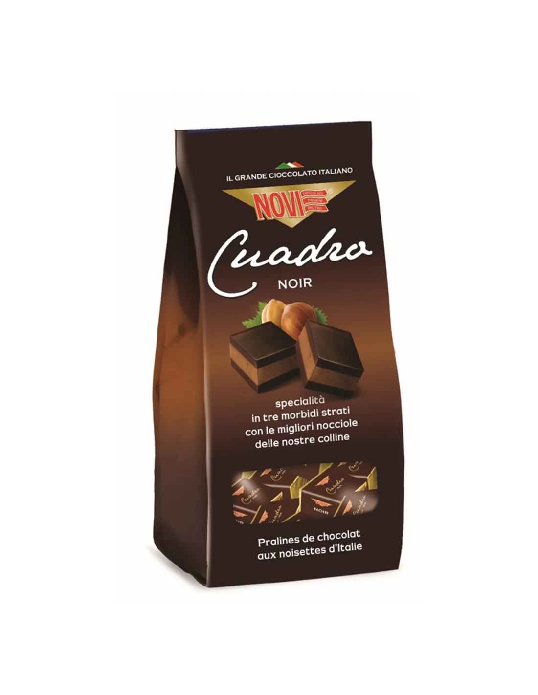 Die Novi Cuadro Noir sind köstliche Zartbitterschokoladen-Quadrate, verpackt in einem praktischen 150-Gramm-Beutel, ideal für Liebhaber intensiver Schokoladenaromen. Hergestellt aus hochwertiger Zartbitterschokolade, bieten diese Quadrate einen reichen und umhüllenden Geschmack, der sanft im Mund schmilzt und ein Moment puren Genusses schenkt. Perfekt, um sie zu jeder Tageszeit zu genießen, sind sie ideal zum Teilen mit Freunden oder für eine süße Auszeit. Mit Novi Cuadro Noir wird jeder Bissen zu einem unvergleichlichen Erlebnis aus dunkler Schokolade.