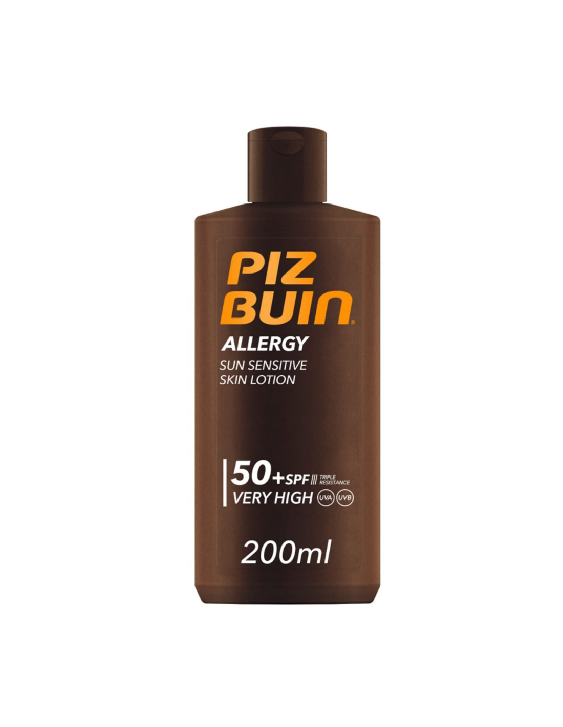 Schützen Sie Ihre empfindliche Haut mit PIZ BUIN® ALLERGY, einem Sonnenschutzmittel, das unter Mitwirkung von Dermatologen entwickelt wurde. Selbst eine minimale Einwirkung von UV-Strahlen kann juckende Haut und Hautunreinheiten verursachen, was die Sonneneinstrahlung erschwert. Dieses Produkt bietet wirksamen UVA/UVB-Schutz, kombiniert mit zwei patentierten, beruhigenden und schützenden Inhaltsstoffen: CALMANELLE® und FEVERFEW PFE™. CALMANELLE®: Trägt dazu bei, die Haut widerstandsfähiger gegen die Sonne zu machen. FEVERFEW PFE™: Kraftvolles Antioxidans, das die Abwehrkräfte der Haut stärkt. PIZ BUIN® ALLERGY zieht schnell ein, spendet stundenlang Feuchtigkeit, beruhigt die Haut und beugt einem Peeling vor. Lassen Sie sich mit dieser speziellen Lotion für empfindliche Haut unbesorgt von der Sonne umarmen. Darüber hinaus ist es wasserabweisend und bietet langanhaltenden Schutz auch bei Wasseraktivitäten. Entscheiden Sie sich für PIZ BUIN® ALLERGY und genießen Sie die Sonne sicher.