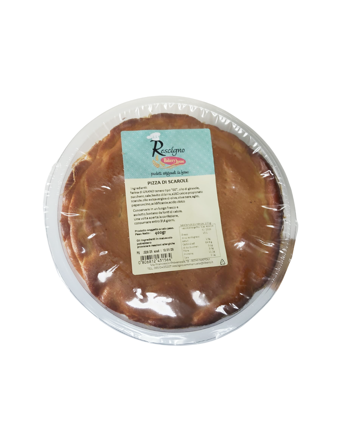 The Rescigno Bakery offers a scarola pizza that captivates with its balanced flavor and crispy crust. The combination of fresh escarole and other natural ingredients like black olives creates a rich and authentic taste, perfect for those who love the traditional flavors of Italian cuisine without going overboard. This product stands out for its freshness and quality, ideal for a quick yet tasty dinner. Renowned for its focus on selecting the finest raw materials, Rescigno Bakery ensures a pizza that truly represents the culinary tradition of Naples.