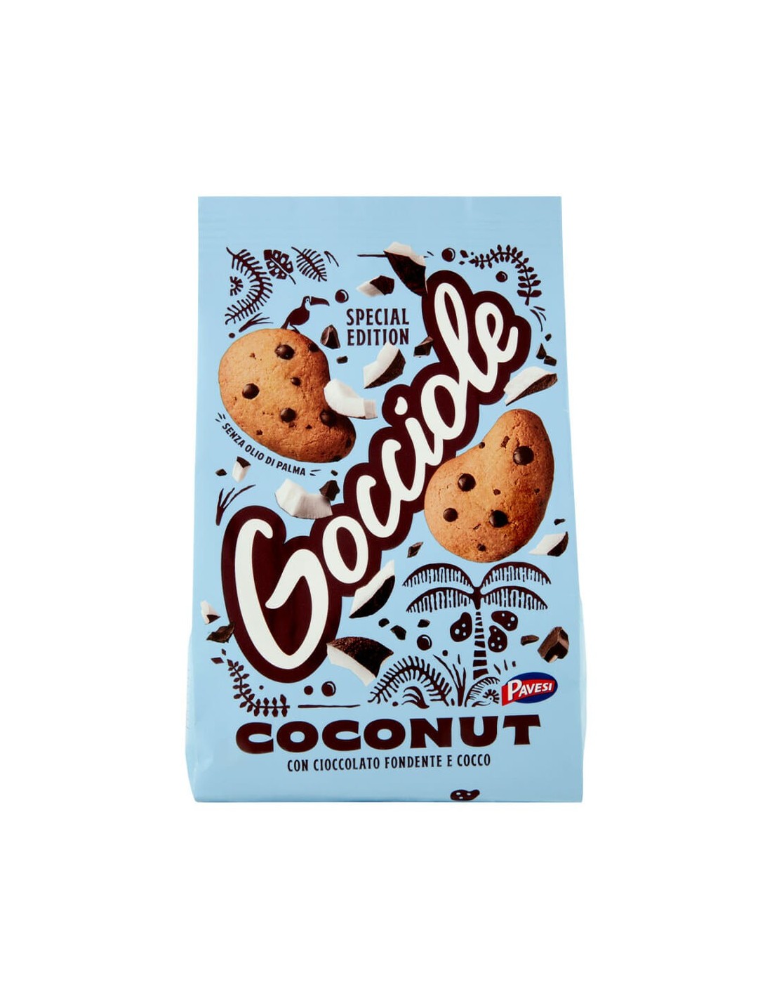 Coconut Gocciole cookies are perfect to start the day with energy and a hint of exotic sweetness. For a rich and tasty breakfast, try pairing these cookies with natural yogurt or a bowl of warm oats to add a touch of creaminess that wonderfully complements the crispiness of the Gocciole. If you're always on the move, enjoy them as an afternoon snack with a cup of green tea or a fresh fruit-based drink for a quick energy boost. Their versatility also makes them great as a base for spoon desserts, crushed to add texture and coconut flavor.Ingredients