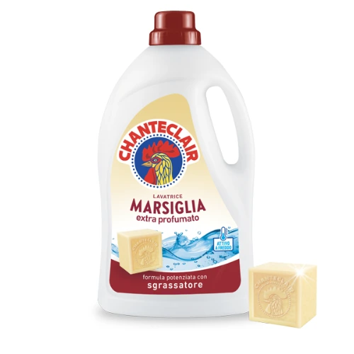 Chanteclair is a historic brand deeply rooted in the Italian cleaning tradition, born in Marseille at the beginning of the twentieth century thanks to master soap maker Monsieur Auguste Roustan. His intuition was to create a natural and fragrant soap, based on simple and genuine ingredients, destined to become a synonym of effectiveness for generations. Marseille Soap, recognizable for its authentic fragrance and strong cleaning power, is the original core of a brand that has evolved with consistency and vision. The Rooster symbol, now an unmistakable icon of the brand, represents pride, energy, and the daily awakening to a deep, authentic, and uncompromising clean.