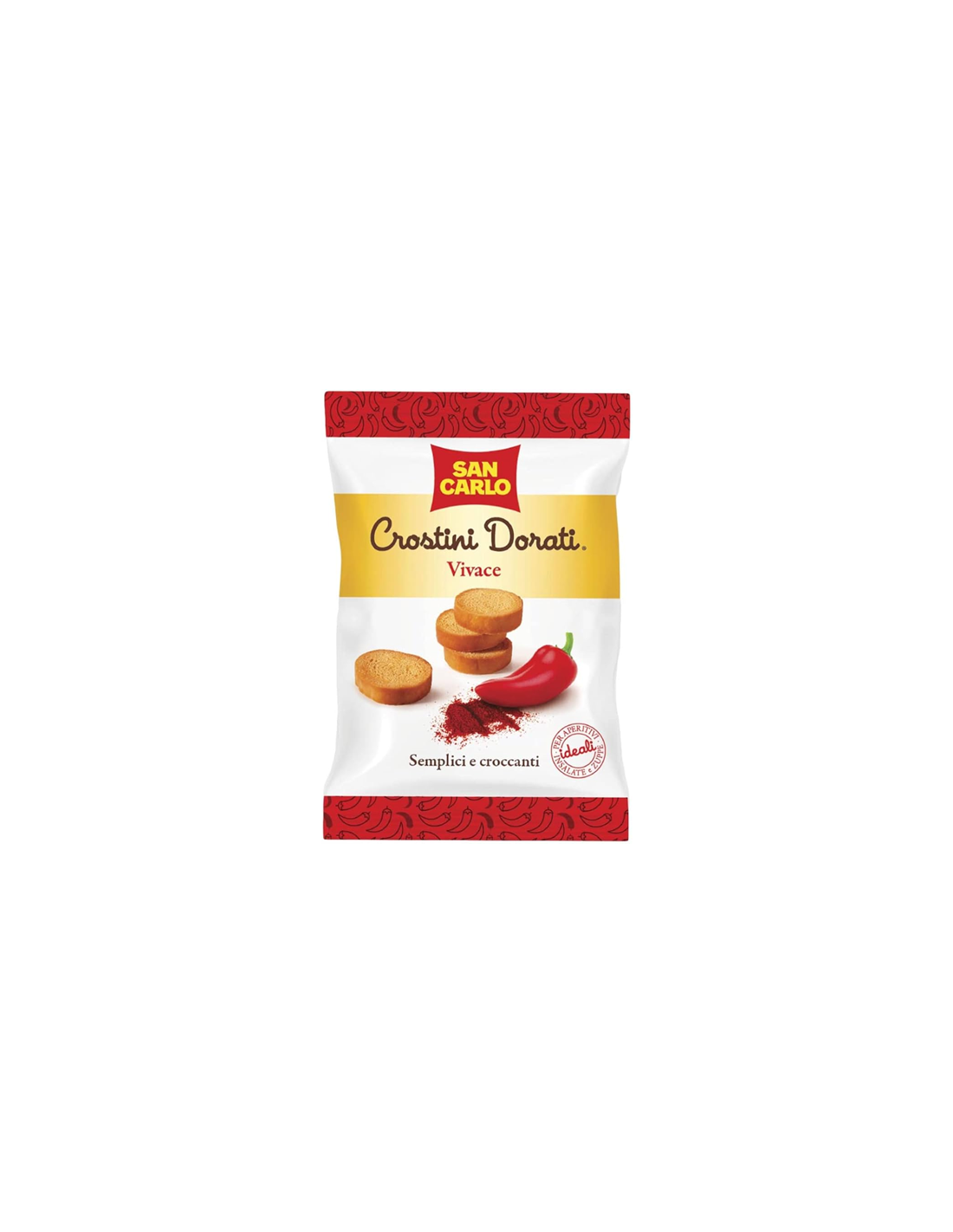 The Vivace Golden Crostini are the result of genuine San Carlo tradition and quality. These are toasted, crunchy and tasty slices of bread, seasoned with the lively flavor of paprika. Perfect for enriching and giving more consistency to your soups, creams and veloutés. They also pair beautifully with fish soups, sautéed mussels or clams, adding a touch of crunchiness and unique flavour.