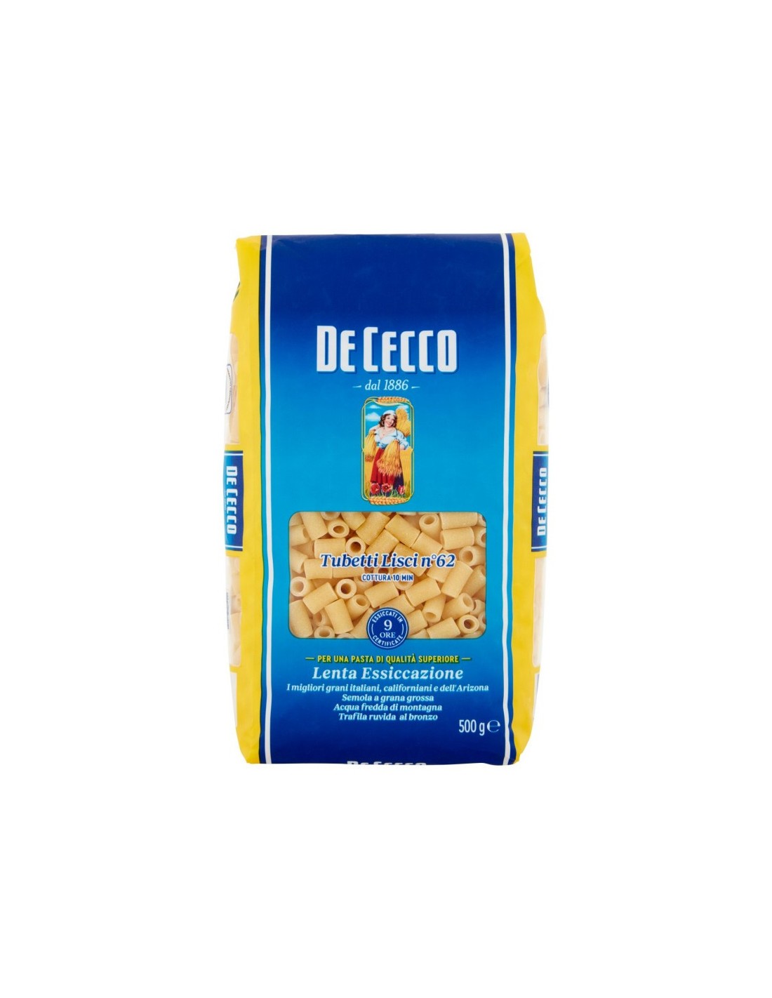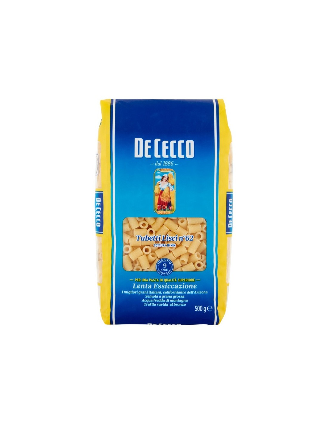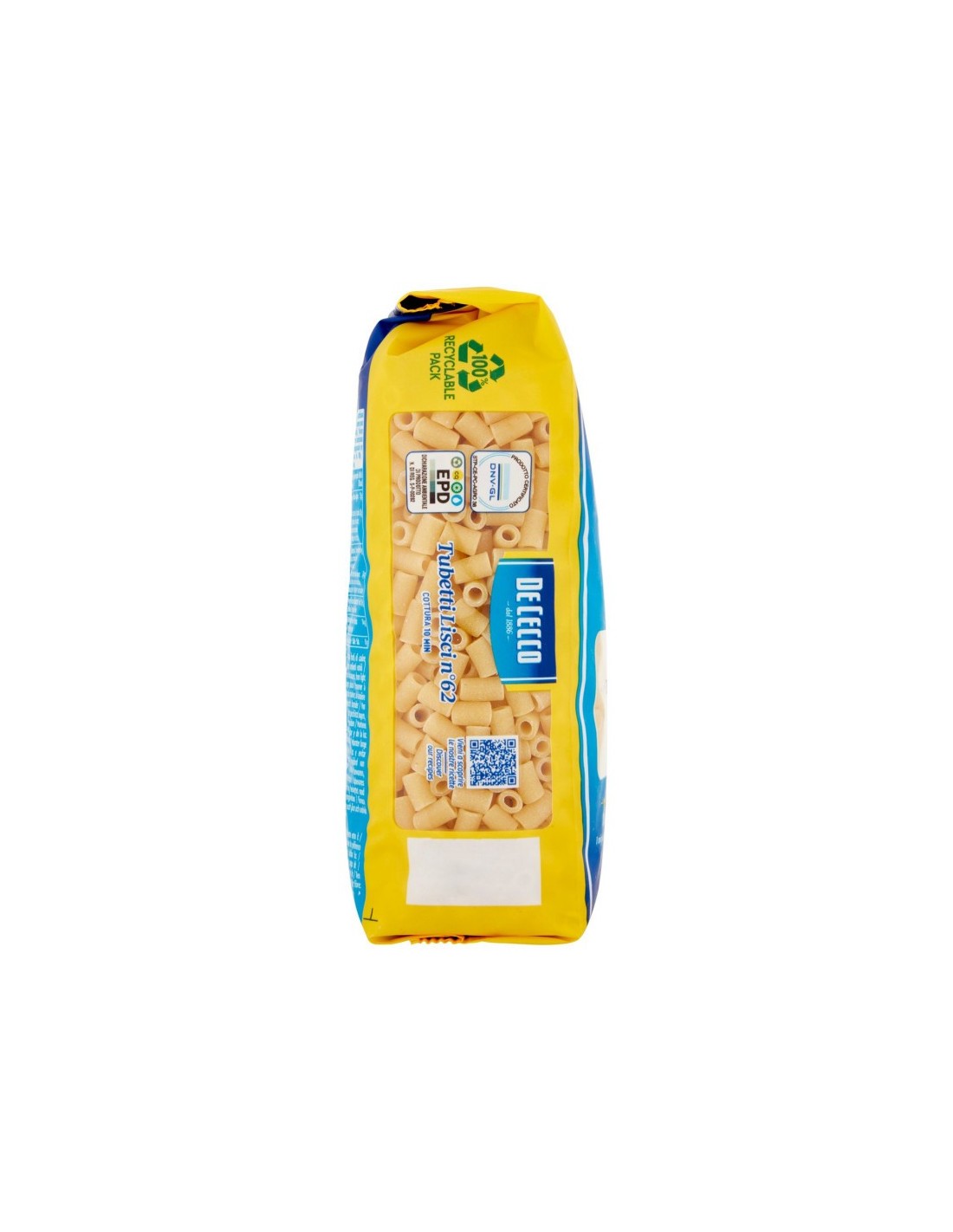 Explore culinary perfection with De Cecco 62 Tubetti Lisci, a superior quality pasta that will delight you with its authentic taste. Their smooth texture and unforgettable flavour make every forkful an experience of pleasure. Choose De Cecco 62 Tubetti Lisci to create memorable dishes that celebrate the quality of pasta. Get ready to enjoy the best that pasta has to offer and be won over by the authentic pleasure of De Cecco 62 Tubetti Lisci.