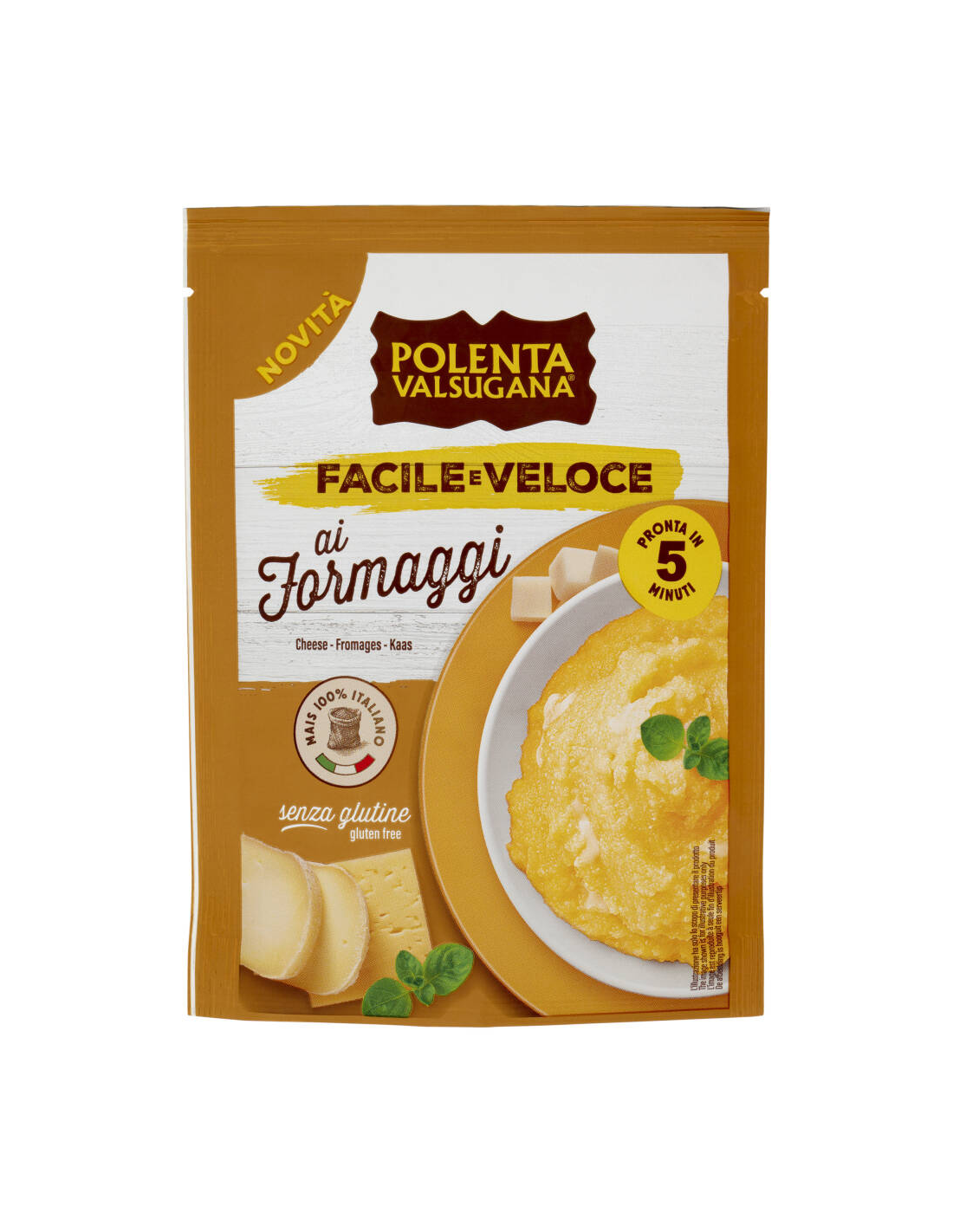 Prepare a delicious cheese polenta has never been so easy and quick thanks to Polenta Valsugana. Packaged with care to ensure maximum freshness and genuineness, this polenta is perfect for those who want a traditional dish with an authentic flavor in just a few minutes. With its selected cheeses and perfect texture, Polenta Valsugana will satisfy all palates, giving a unique and irresistible culinary experience. Add an Italian touch to your table with Polenta Valsugana and let yourself be conquered by the goodness and practicality of a product that will surprise you with every bite. Buy Polenta Valsugana now and bring the taste of Italian tradition to your table.
