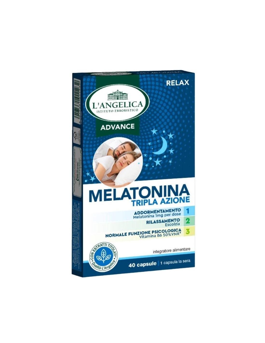 To make the most of L'Angelica Advance Supplement with Melatonin, create an evening routine that promotes relaxation. Five minutes of meditation or reading a book can be the perfect complement to the action of the capsules. Avoid the use of bright screens such as smartphones or tablets at least an hour before bedtime, to allow the melatonin to act more effectively. This supplement is also a great ally for frequent travelers: include it in your suitcase to help you quickly adjust to new time zones. Remember that a quiet and dark environment is ideal to benefit from a deep and restorative sleep.- Brand
