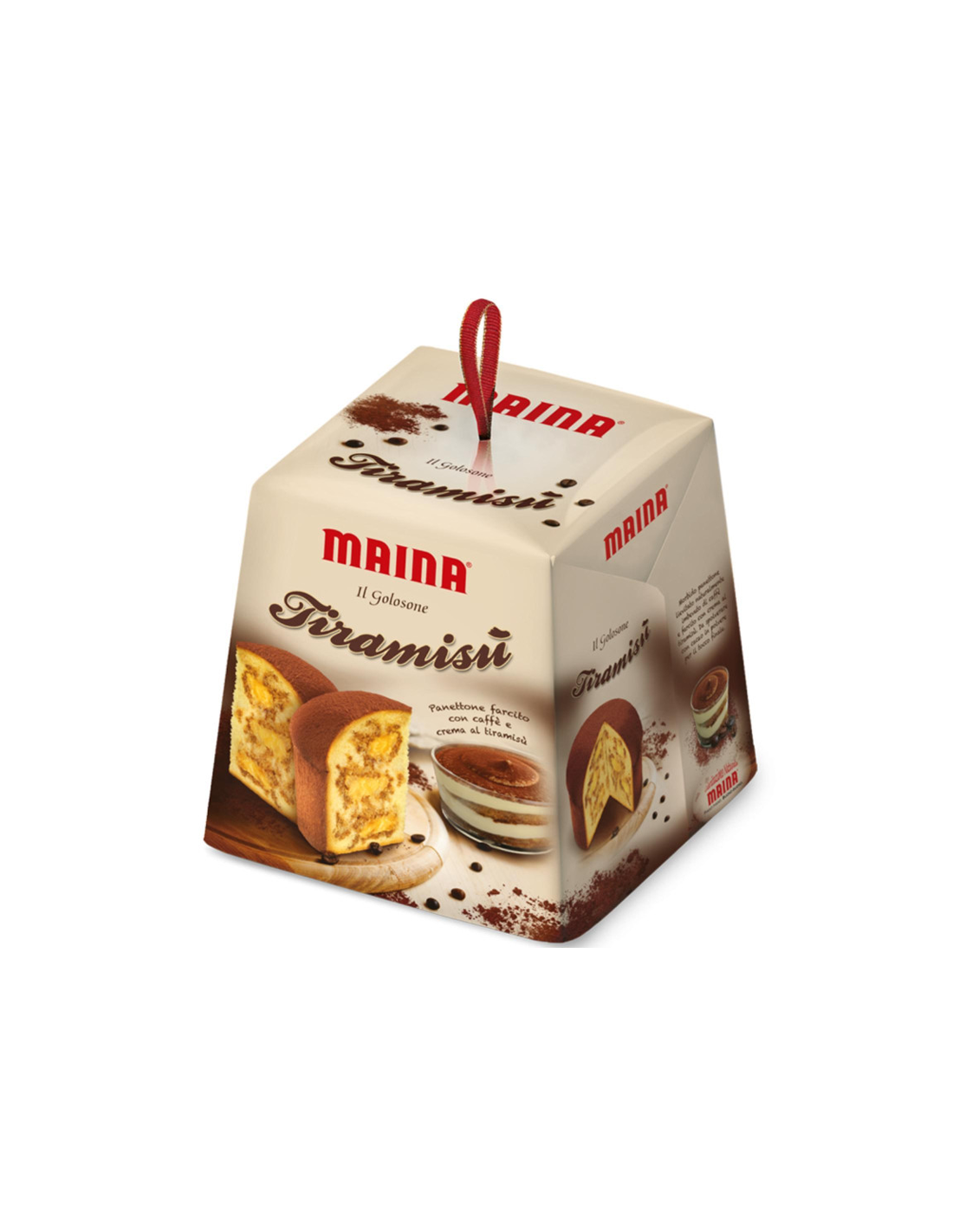 The Tiramisu Panettone by Maina combines the tradition of the Christmas cake with the beloved flavor of tiramisu. This product offers a unique taste that blends the softness of panettone with the creaminess and intense aroma of coffee and mascarpone. It's perfect for those looking for a delicious twist on the classic panettone.