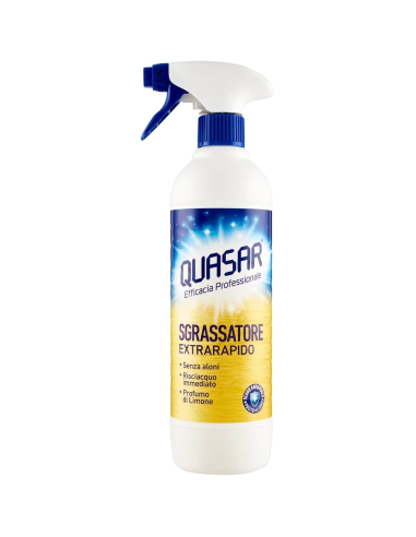 An effective degreaser that is great for degreasing any greasy surface in the house? Just fill the house with hundreds of ineffective and disappointing products: you only need one. Which one? What a question! Quasar Universal Degreaser Spray! Ideal for cleaning the kitchen, tiles, and stovetops, but also perfect for more difficult-to-treat surfaces such as hoods or ovens. Simply spray the product on the surface to be degreased and clean with a damp sponge. In an instant, everything shines with Quasar!
