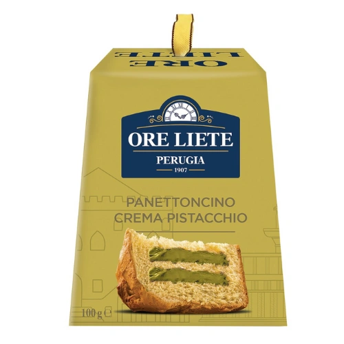 Anecdote : la forme en étoile du pandoro n'est pas fortuite mais fut brevetée en 1894 par Domenico Melegatti à Vérone, s'inspirant des douceurs de la tradition habsbourgeoise qui dominaient la Vénétie au dix-neuvième siècle. Cette structure à huit pointes permet au doux de cuire uniformément et de créer des tranches de forme élégante qui se prêtent à être servies avec des crèmes, du mascarpone ou simplement avec d'autre sucre glace pour ceux qui aiment le goût pur. Ore Liete a choisi de reproduire cette forme aussi dans les formats mignons, maintenant les proportions originales et cette consistance qui fait du pandoro un levé complètement différent du panettone, plus compact et beurré, moins aérien mais tout aussi capable de conquérir ceux qui le goûtent.
