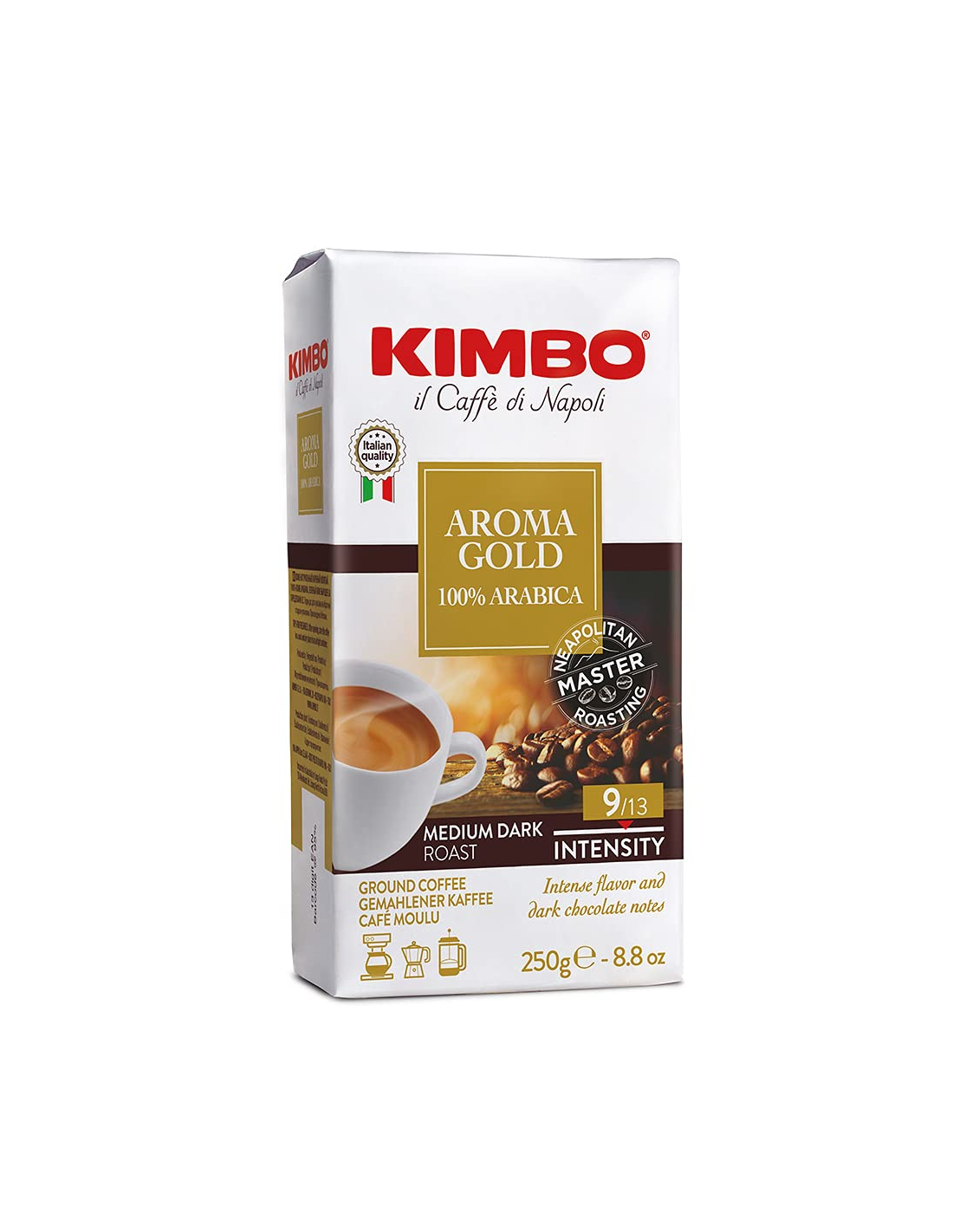 Dégustez l'arôme intense et la saveur délicate du Café Kimbo Gold 100% Arabica, un espresso qui séduit avec son profil aromatique riche et une crème veloutée. Sa composition unique offre un équilibre parfait entre douceur et acidité, garantissant une expérience gustative impeccable. Idéal pour commencer la journée avec énergie ou comme pause délicieuse dans l'après-midi.