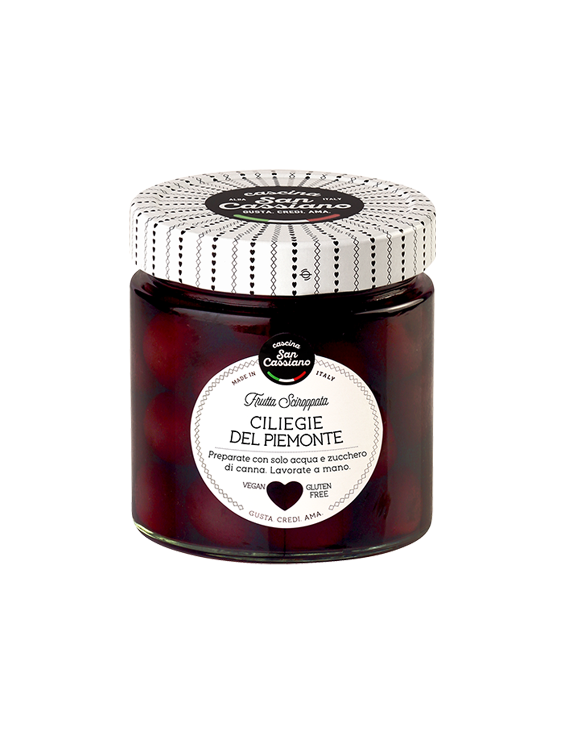 Cerises du Piémont au sirop, préparées avec seulement trois ingrédients : cerises fraîches, eau et sucre de canne. Un produit végan et sans gluten qui préserve toute la saveur authentique du fruit italien. Les cerises entières, immergées dans un sirop délicat, sont parfaites pour enrichir desserts, salades de fruits, glaces, cocktails, yogourts et gâteaux. Idéales également pour la création de sucettes glacées ou de jus naturels grâce à leur sirop riche et parfumé. Chaque fruit est sélectionné et traité avec soin pour garantir qualité et authenticité. Cette délice piémontaise peut être savourée toute l'année et donne une touche artisanale à vos recettes sucrées. Il est conseillé de dénoyauter les cerises avant utilisation. Parfait pour ceux qui recherchent un produit naturel, sans conservateurs, au goût authentique et avec une grande polyvalence en cuisine.