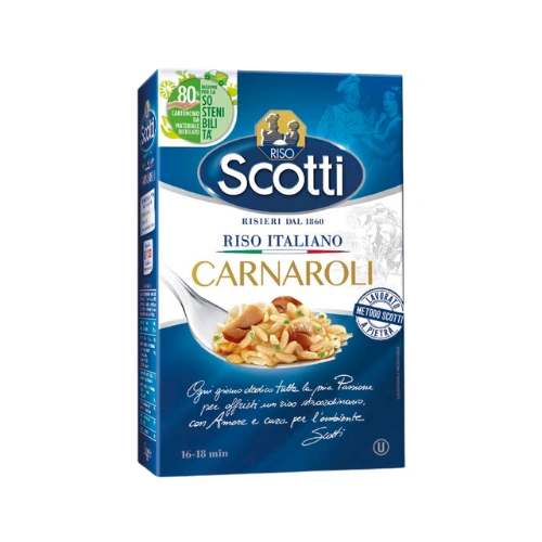 Fondata nel 1860 da Pietro Scotti a Marudo, in provincia di Lodi, Riso Scotti è oggi uno dei marchi simbolo della tradizione risicola italiana. Con oltre 160 anni di esperienza alle spalle, il brand ha saputo coniugare il rispetto per il territorio con l’innovazione tecnologica, diventando un punto di riferimento sia in Italia che all’estero. La trasformazione da piccola attività agricola a gruppo industriale internazionale è stata graduale ma costante: dal trasferimento a Villanterio nel 1890, alla costituzione di Riso Scotti S.p.A. nel 1956, fino all’introduzione pionieristica del confezionamento sottovuoto nei primi anni '90. Un'azienda familiare che, pur evolvendosi, ha sempre mantenuto saldi i propri valori legati alla qualità e alla filiera corta, riuscendo a esportare il modello di agroindustria italiana anche attraverso iniziative come il Progetto Danubio in Romania. L’identità visiva e il packaging dei prodotti si sono evoluti nel tempo, dal cartone rigido degli anni ’50 al design moderno e sostenibile attuale, sempre con l’obiettivo di garantire trasparenza, igiene e riconoscibilità sugli scaffali.