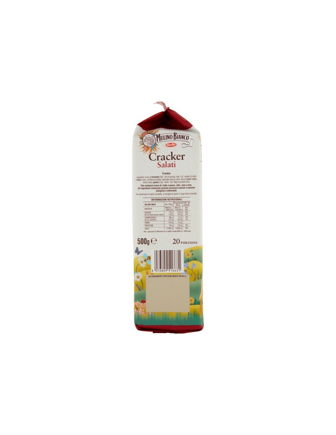 I Crackers Salati Mulino Bianco sono perfetti come spuntino leggero e croccante in qualsiasi momento della giornata. Abbinarli con formaggi morbidi o spalmabili può esaltarne il sapore, creando un equilibrio gustoso tra il salato del cracker e la cremosità del formaggio. Sono anche eccellenti accompagnati da una fetta di salame o prosciutto crudo per un aperitivo veloce ma ricco di sapore. Per un'alternativa fresca e leggera, provate a servirli con una guarnizione di avocado schiacciato e un pizzico di pepe nero. Non dimenticate di includerli nei vostri cestini da picnic, sono l'ideale per uno snack veloce e soddisfacente all'aria aperta!Ingredienti