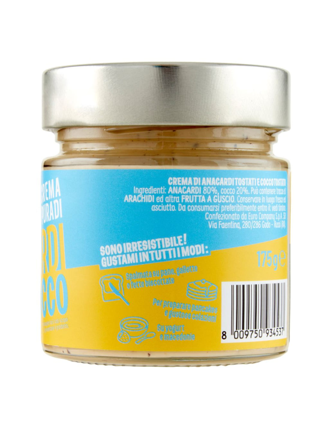 Preparati a vivere un'esperienza gustativa esclusiva con la nostra Crema 100% Anacardi e Cocco. Realizzata con ingredienti di alta qualità, questa deliziosa crema si distingue per la sua cremosità e il suo gusto avvolgente. Perfetta da spalmare sul pane o da utilizzare come ingrediente per dolci, ti conquisterà con il suo sapore unico e genuino. Provala e lasciati trasportare in un viaggio di sapori e profumi che ti coccoleranno e delizieranno il palato. Confezionata con cura dalla Euro Company, questa crema rappresenta l'eccellenza italiana nel mondo della gastronomia. Deliziosa e irresistibile, la Crema 100% Anacardi e Cocco è l'alleata perfetta per rendere i tuoi momenti speciali ancora più memorabili.