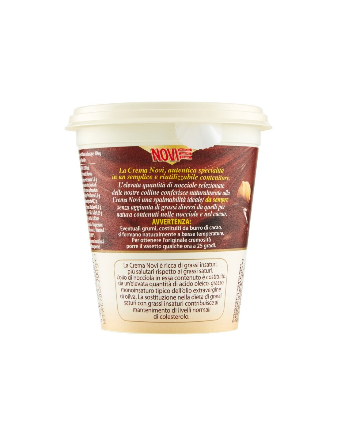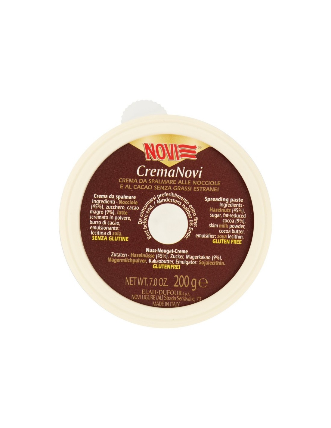 Non vogliamo annoiarti con numeri e informazioni nutrizionali: non siamo mica il tuo nutrizionista! Ma questa devi sentirla: 45% di nocciole selezionate, senza aggiunta di grassi diversi da quelli naturalmente contenuti nel cacao e nelle nocciole. Per una crema squisitamente spalmabile. Sì, stiamo parlando della Crema Novi Spalmabile, qui in confezione da 200 gr. Una specialità tutta da spalmare sul pane o sulle fette biscottate per una merenda nutriente e ricca di gusto e qualità!