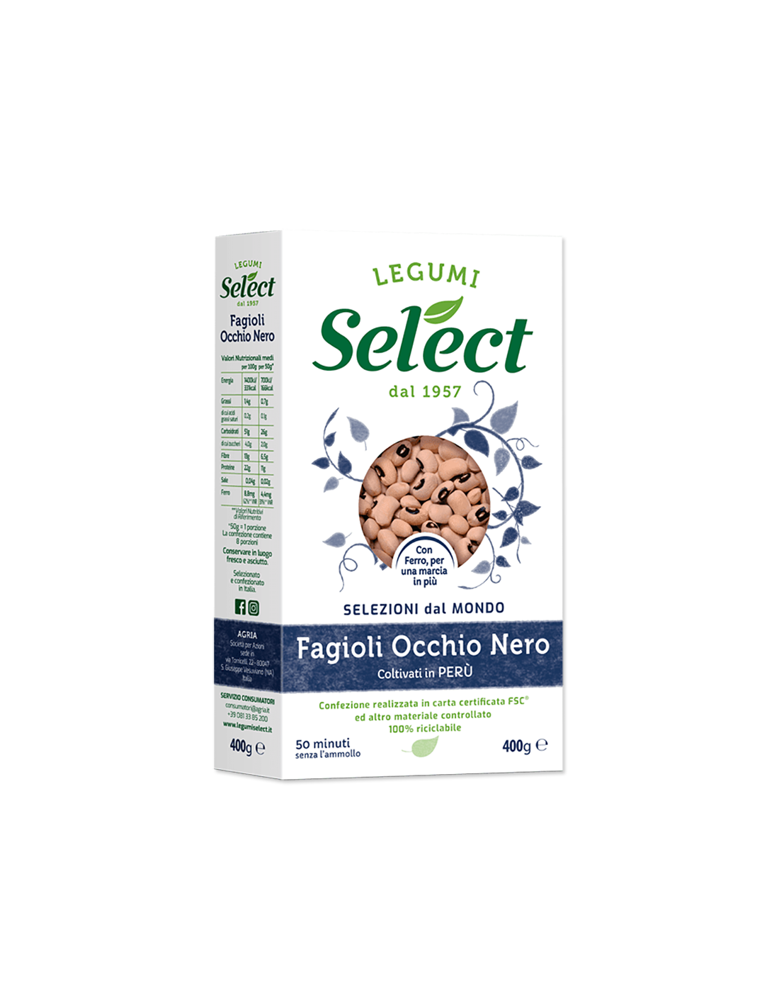Prima della scoperta dell’America gli unici fagioli presenti nel vecchio continente erano i “fagioli dall’occhio”, che venivano utilizzati fin dai tempi degli egizi e dei greci. Le altre varietà, tra cui quelle attualmente più diffuse (borlotti e cannellini), sono sbarcate in Europa nelle galere di Cristoforo Colombo in seguito alla scoperta dell’America. I fagioli occhio nero sono ricchi di ferro, che contribuisce alla normale funzione cognitiva, al normale metabolismo energetico e alla normale funzione del sistema immunitario.