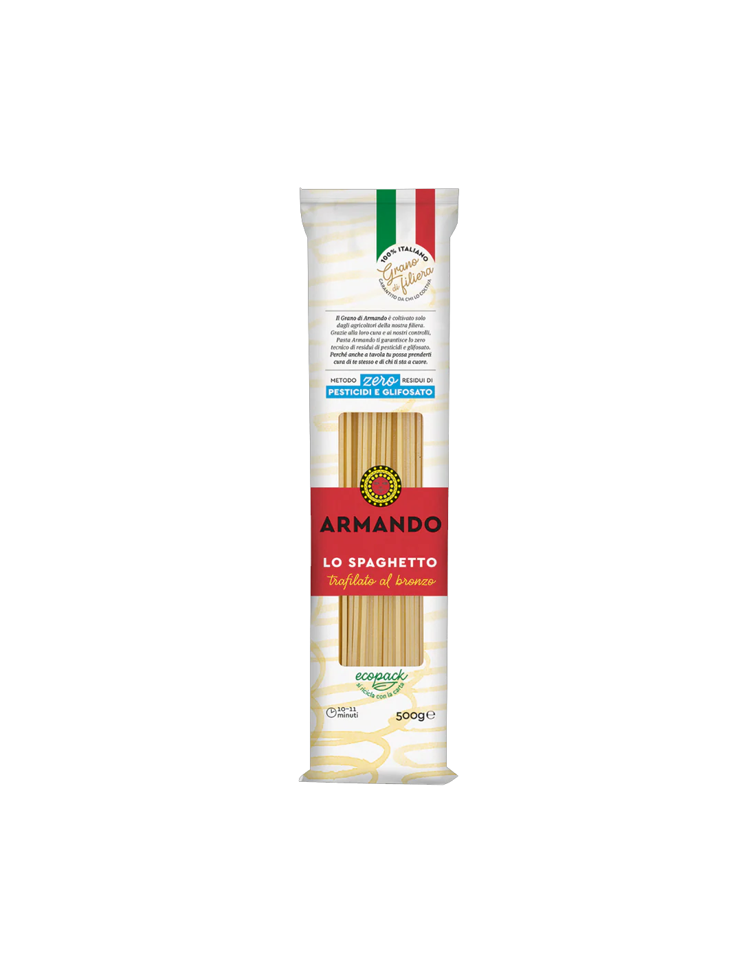Geniet van de Spaghetto Armando, met een door brons getrokken textuur die elke soort saus vasthoudt. Het koken is altijd perfect, ideaal voor liefhebbers van al dente pasta. Deze pastasoort behoudt een authentieke smaak, die doet denken aan Italiaanse tradities. Elk gerecht is een uitnodiging om te gaan zitten en te genieten van een moment van puur genot.