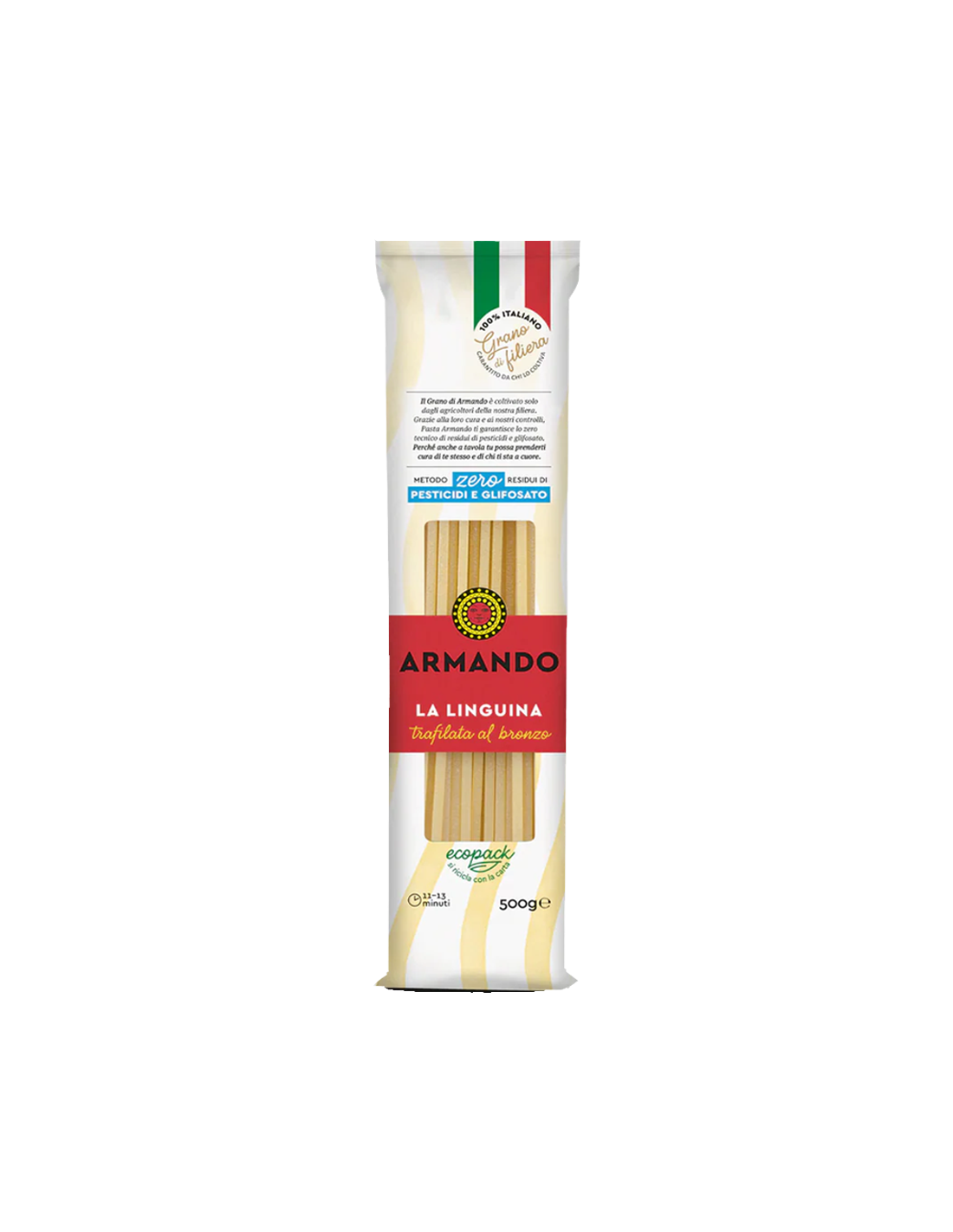 De Bronze-gesneden Linguine van Pasta Armando biedt een authentieke smaak en de perfecte textuur om sauzen te vangen. Het is gemaakt van uitsluitend hoogwaardige durum tarwegries. Deze pasta is ideaal voor degenen die op zoek zijn naar een uitgesproken smaak en eenvoudig, maar heerlijk eten. Het bronsgesneden proces geeft het een ruwe oppervlakte die goed bindt met elk type saus.