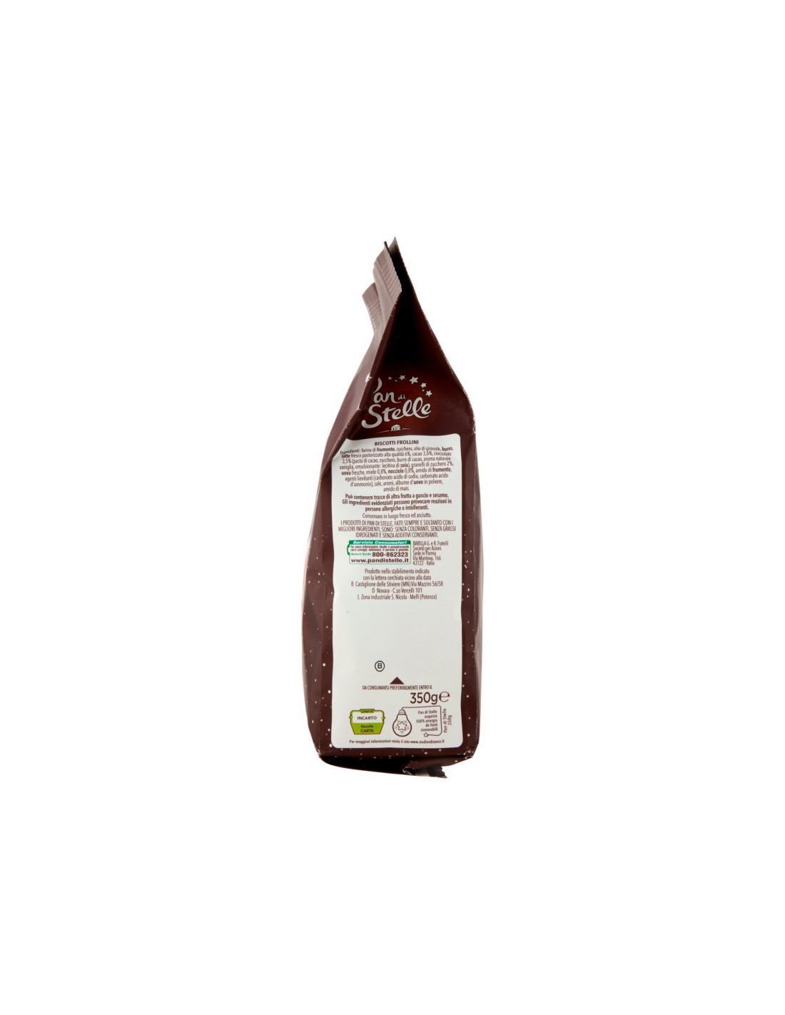 Pan di Stelle koekjes zijn perfect voor je pauzemoment op elk uur van de dag. Stel je voor dat je ze in warme melk doopt voor een voedzaam en zoet ontbijt, of ze serveert met een kop thee op koude winteravonden. Voor een speciale snack, probeer ze te verkruimelen over vanille-ijs voor een knapperige en heerlijke tegenstelling. Een andere creatieve manier om ze te gebruiken is bij het maken van een cheesecake: gebruik de verkruimelde koekjes als basis om een vleugje cacao aan je favoriete dessert toe te voegen.Ingrediënten