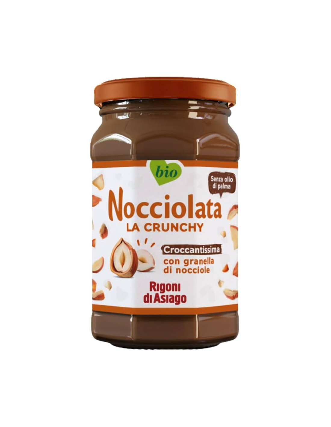 Heerlijke hazelnoot-chocoladespread verrijkt met knapperige hazelnoten, de biologische Nocciolata Crunchy van Rigoni di Asiago is de ideale lekkernij voor een onweerstaanbaar ontbijt of tussendoortje. Gemaakt met hoogwaardige biologische ingrediënten, zal deze spread je veroveren met zijn romige en toch knapperige textuur. Met zijn onweerstaanbare smaak van chocolade en hazelnoot, zal deze lekkernij zowel jong als oud verrukken. Perfect om op brood te smeren of rechtstreeks van de lepel te genieten, de biologische Nocciolata Crunchy is een ware traktatie voor de smaakpapillen. Verwen jezelf met de goedheid en authenticiteit van dit Italiaanse product voor een moment van puur zoet genot.