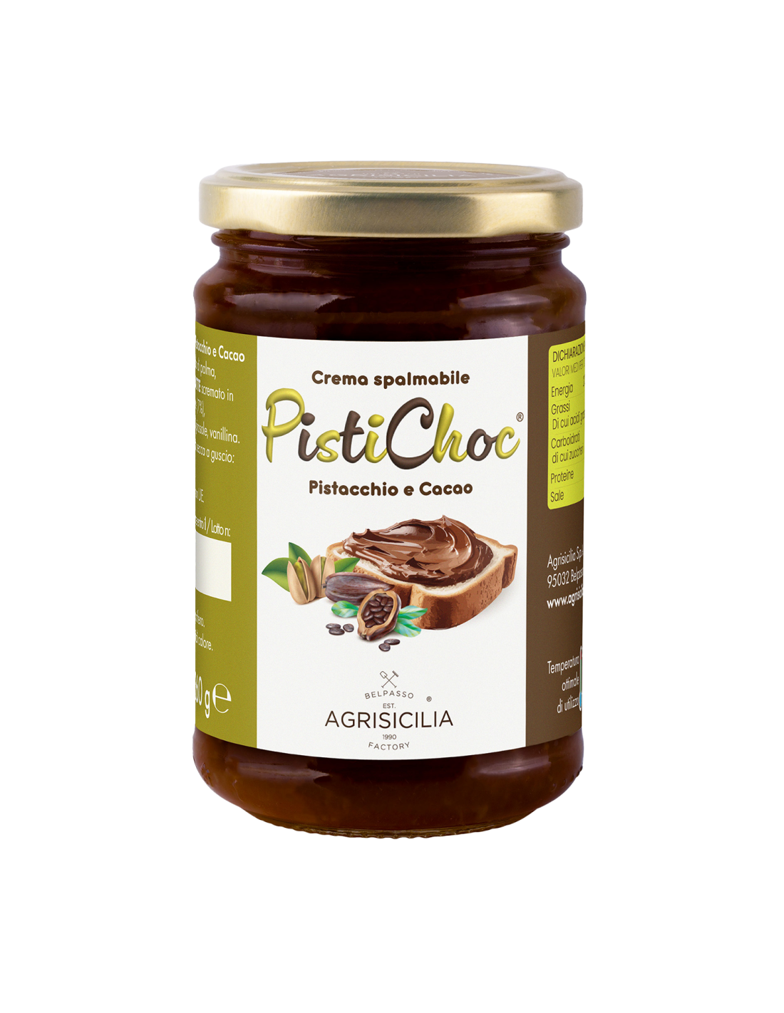 Verwen jezelf met de omhullende zoetheid van Agrisicilia Pistichoc, de smeerpasta die de rijke geur van pistachenoten combineert met de heerlijke smaak van cacao. Een romige verleiding die van elk moment een klein feestje voor je smaakpapillen maakt. Perfect om op een stuk brood te smeren voor een energierijk ontbijt of om je desserts een chique touch te geven. Deze pasta is ideaal voor wie wil genieten van een smaakvolle traktatie, met oog voor kwaliteit. Met Agrisicilia Pistichoc wordt elke hap een reis naar het hart van de Italiaanse zoetwarentraditie, waar liefde voor goede smaken kunst wordt.