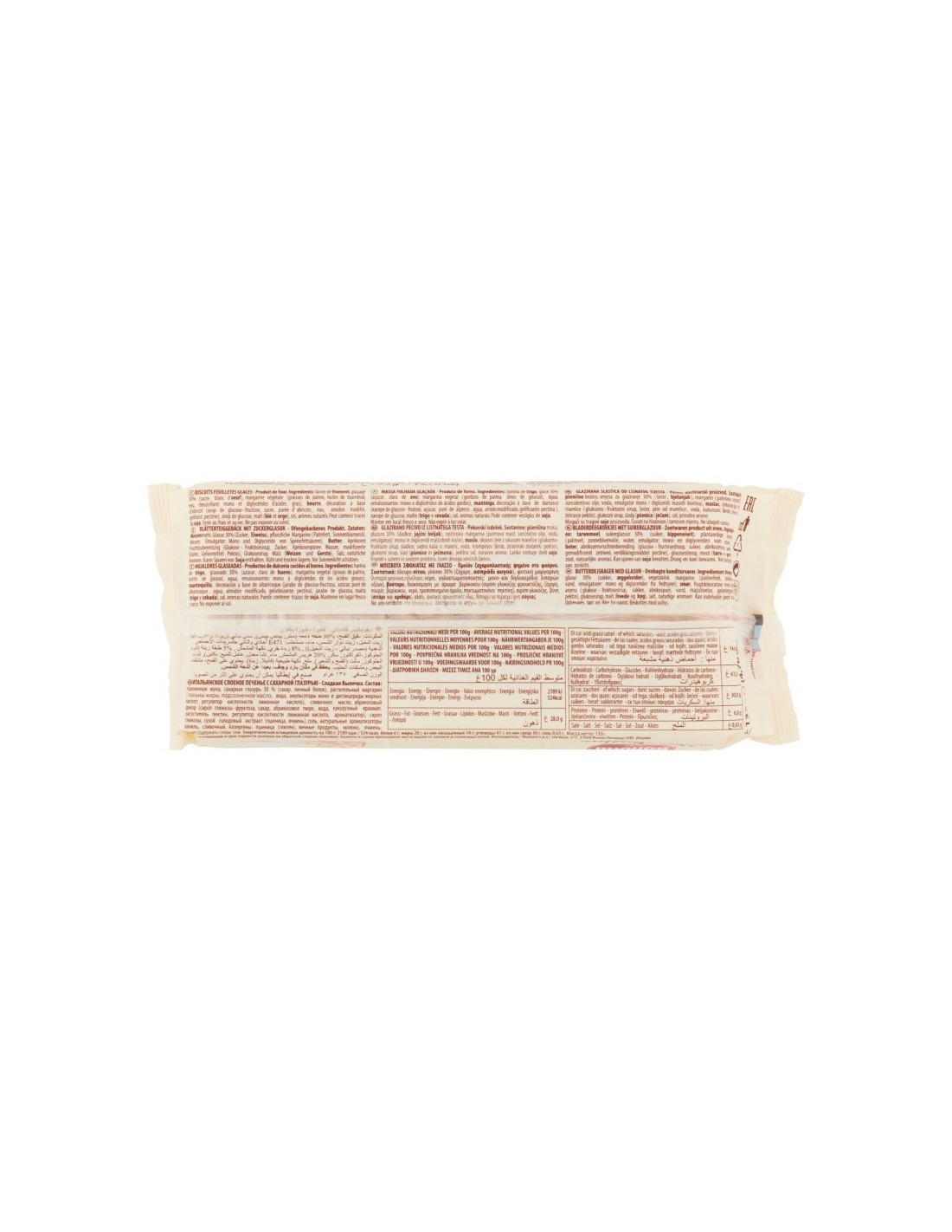 Ingrediënten: Tarwebloem, Glazuur 30% (suiker, eiwit), Plantaardige margarine (palmvet, zonnebloemolie, water, emulgatoren: mono- en diglyceriden van vetzuren), Boter 8%, Abrikoosdecoratie 5% (glucose-fructosestroop, suiker, abrikozenpuree, water, gemodificeerd zetmeel, geleermiddel: pectine), Glucosestroop, Mout (van tarwe en gerst), Zout, Natuurlijk aroma, Kan soja bevatten