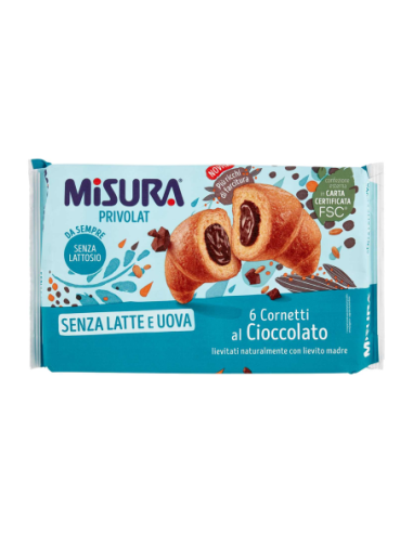 Misura Croissants zijn ideaal voor wie op zoek is naar een smakelijk, maar gezond ontbijt. Hun zachtheid omhult een rijk chocoladehart, perfect om je dag met een vleugje zoetheid te beginnen. De zorgvuldige selectie van ingrediënten maakt ze ook geschikt voor de bewuste eter. Geniet van het plezier van een product dat smaak en lichtheid combineert, met behoud van de hoge kwaliteit die typisch is voor echte Italiaanse producten. Een praktische optie voor gezinnen, sporters en iedereen die zich wil verwennen met een lekker tussendoortje zonder te overdrijven. Lactosevrij.